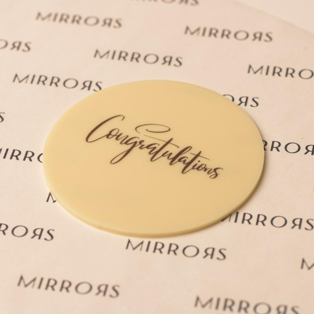 أضف لمسة خاصة على كيكك المفضل مع عبارات شوكولاتة ميرورز المصممة لتعبّر عن مشاعرك بكل أناقة.
